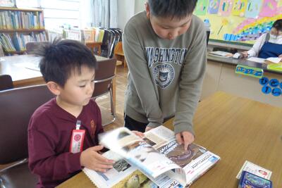 3時間目に、1・2年生で学校探検をしました。2年生が、いろいろな場所の案内をしてくれました。