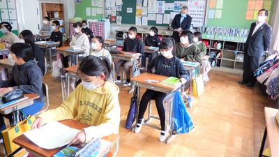 学校教育に対する理解を深めたいとのことで、市議会議員の学校訪問がありました。訪問者は、鈴木隆(すずき たかし)議員、市教委より植竹教育長、大森教育部長、明澤学校教育課長の4名です。各教室を回り、授業の様子を参観されました。きちんと授業を受ける子供たちを見て、いい子供たちだねとお褒めいただきました。
