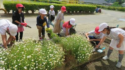 なかよし班で花壇整備をして、来週実施する花植えの準備をしました。