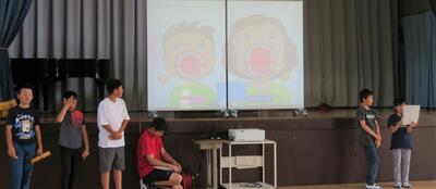 今日の集会は、保健給食委員会の発表でした。歯に関する○×クイズを行いました。