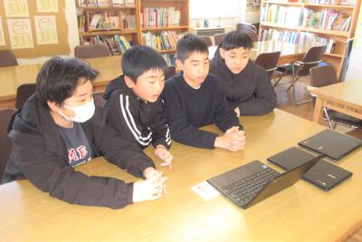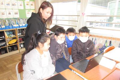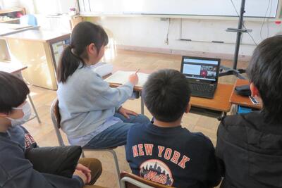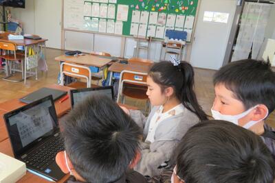 両郷の子供たちは、学校の周りの生き物について発表をしました。
