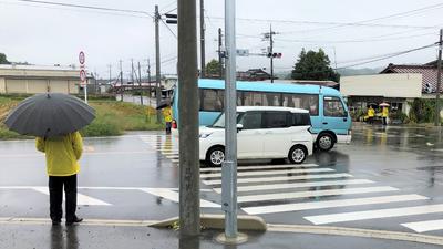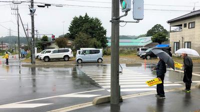 毎月8日は、「8の日街頭指導の日」ということで、両郷地区安全協会の皆様と学校教職員とで、朝の街頭指導を行っています。あいにくの雨ではありましたが、子供たちのため、地域の安全のために街頭に立っていただきました。本当にありがとうございます。