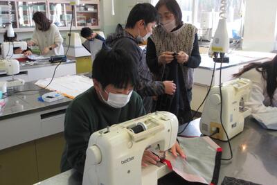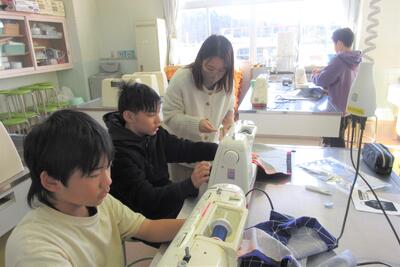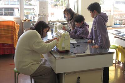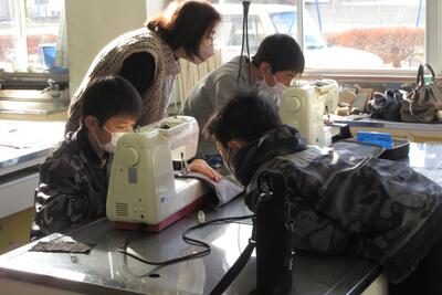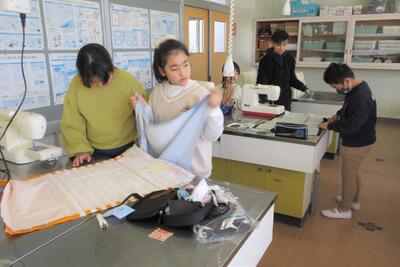 😄5年生が、地域学校協働活動推進員大塚加代子さんに御指導をいただき、エプロンを仕上げることができました。
