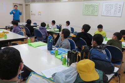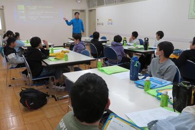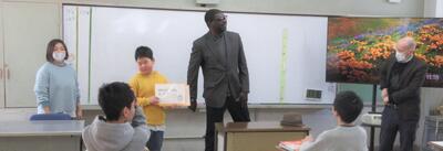 😄さくらんぼの会から馬場様が来校し、読書月間イベントのプレゼントづくりをしてくれました。