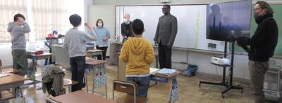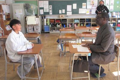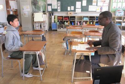 😄6年生が、ALT(Brendan Jenkin 先生 と Ademola Charles Williams先生)によるパフォーマンステストを実施しました。自己紹介をしたり、行きたいところや週末のことなどを伝えたり、ALTからの質問に答えたりしました。