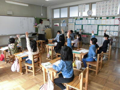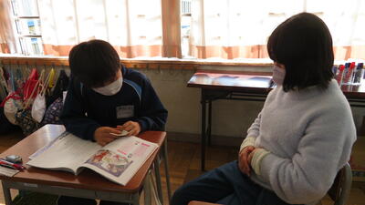 リズムに合わせて、上手に「交互読み」で音読できました。