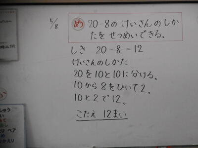 「20-8」のけいさんのしかたを説明できるように、使いました。