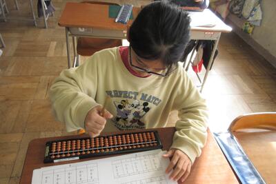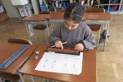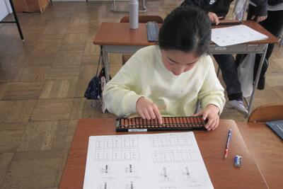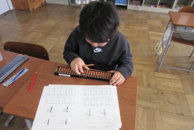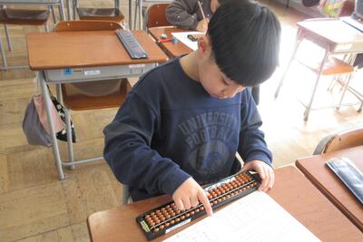 📖3年生が、そろばんの学習で、平山先生に御指導をいただきました。