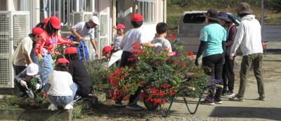 🎶花壇整備:花をぬき、堆肥を入れ、冬用花壇の苗植えの準備をしました。
