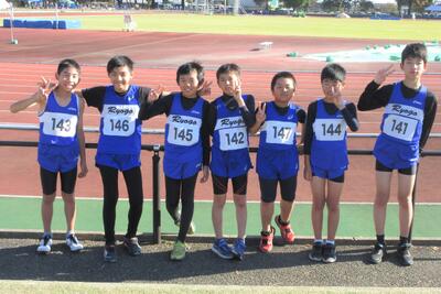 出場種目:5年男子4×100mR(市村瑠青さん・小河原佑太さん・菊池楽久さん・瀧田龍信さん)、5年男子走り高跳び:菊池楽久さん、5年男子80mH:菊池楽久さん、6年男子走り幅跳び:益子泰輔さん