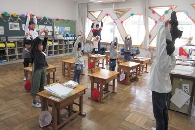 😄明日の入学式の準備を4~6年生が行いました。