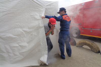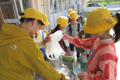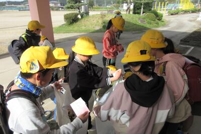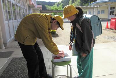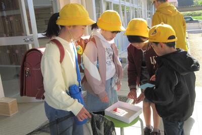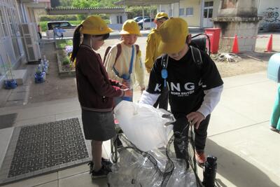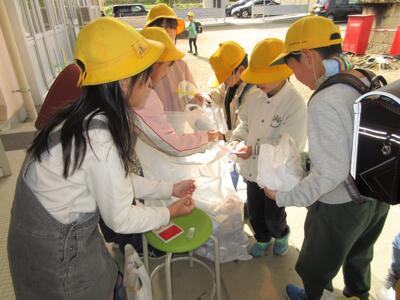 😄避難の様子:口や鼻をハンカチで覆い避難場所に移動しました。