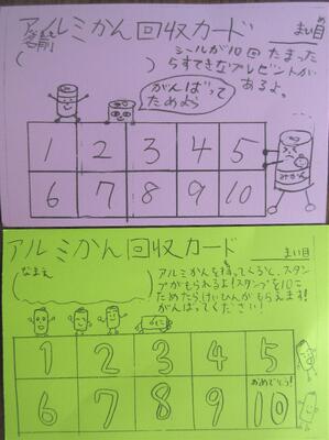 😄水曜日はペットボトル回収日です。環境委員会のこどもたちのアイディアで、ペットボトル回収カードを作成してくれました。